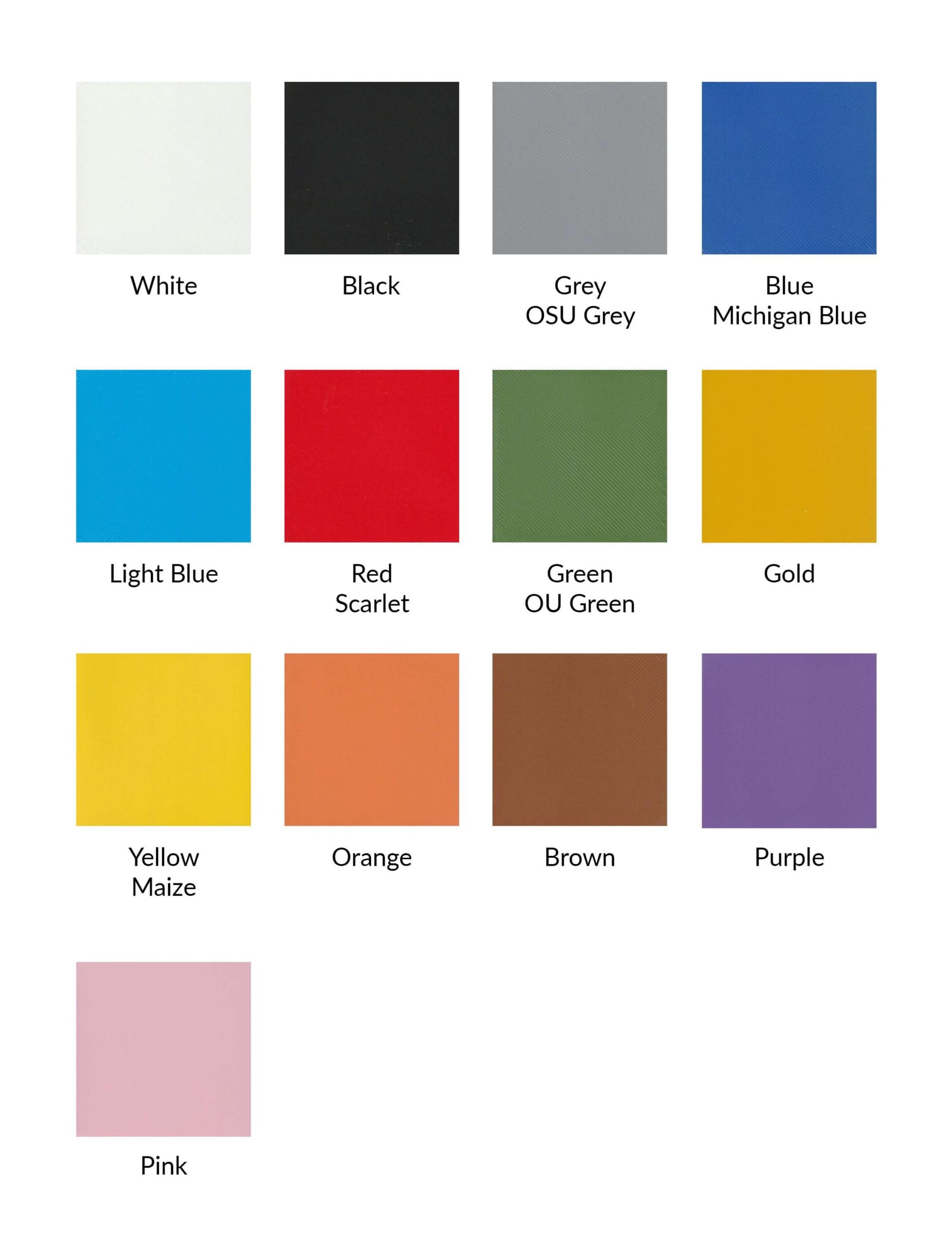 | Primary color | White, Black, Grey, Blue, Light Blue, Red, Green, Pink, Purple, Gold, Yellow, Orange, Brown |